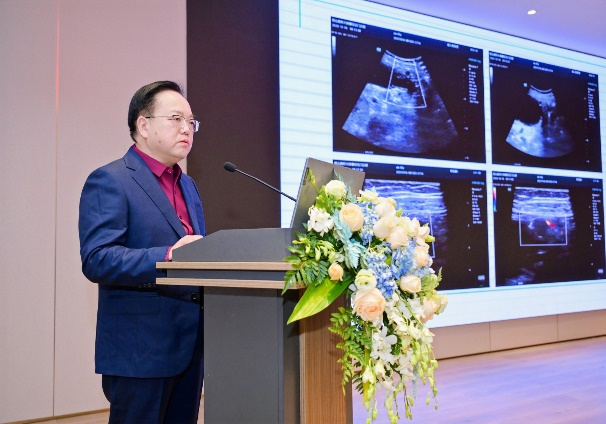 12月2日舉辦了2023年超聲年會,首先由省健康服務(wù)業(yè)協(xié)會會長杜昌智致辭。本屆大會榮幸地邀請到了北醫(yī)三院的苗立英教授,淮北市首府臨床影像研究所的王子干所長、羅洲主任,許春梅主任做精彩的學(xué)術(shù)講座。他們圍繞“成人急腹癥的超聲診斷”、“飲水胃充盈法經(jīng)腹超聲診斷胃部分良性病變”、“經(jīng)腹或/和經(jīng)陰道超聲單獨(dú)或聯(lián)合診斷胃腸道或腹膜與婦產(chǎn)科相關(guān)性疾病”、“胃惡性腫瘤轉(zhuǎn)移至肝門靜脈與腹部血管疾病所致胃腸道異常的彩超診斷”做了詳細(xì)的匯報(bào),專題報(bào)告后,還做了精彩的操作演示。