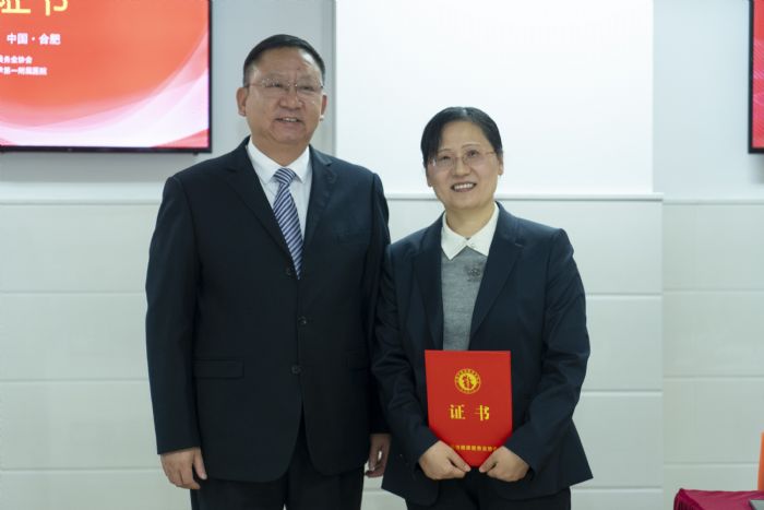 △協(xié)會(huì)副秘書長于澍民宣讀批復(fù)協(xié)會(huì)會(huì)長杜昌智、協(xié)會(huì)副會(huì)長兼秘書長余華伍分別為會(huì)長、副會(huì)長頒發(fā)證書。