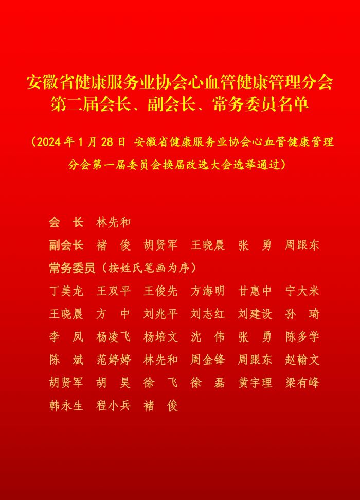 △安徽省健康服務(wù)業(yè)協(xié)會心血管健康管理分會第二屆會長、副會長、常務(wù)委員名單