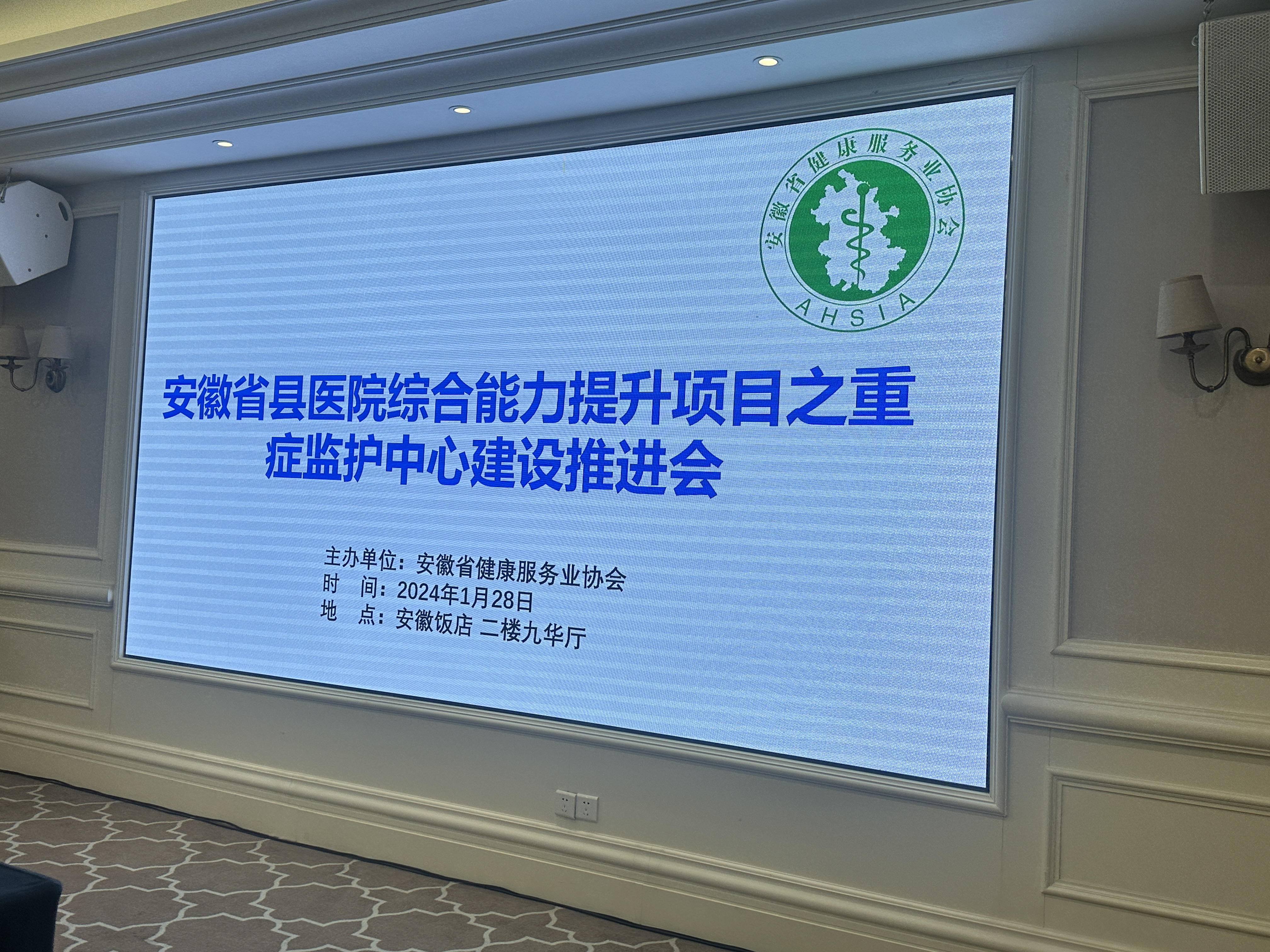 2024年1月28日,由安徽省健康服務(wù)業(yè)協(xié)會(huì)主辦的“安徽省縣醫(yī)院綜合能力提升項(xiàng)目之重癥監(jiān)護(hù)中心建設(shè)推進(jìn)會(huì)”在合肥市舉辦。