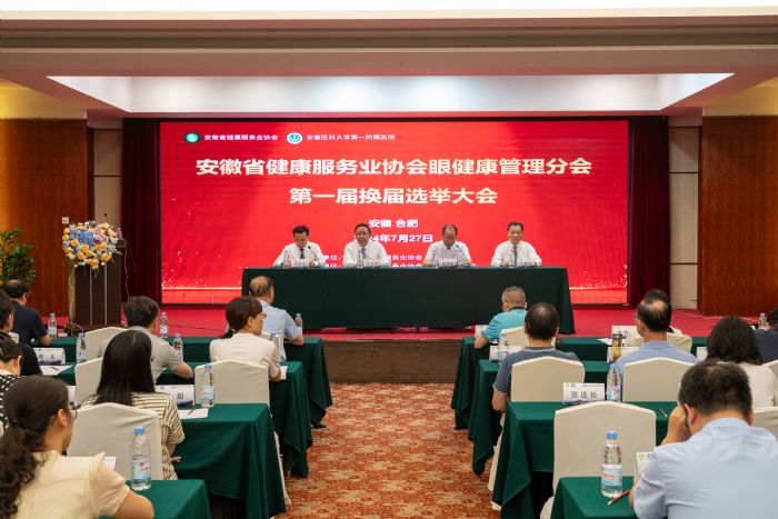 2024年7月27日,安徽省健康服務(wù)業(yè)協(xié)會眼健康管理分會第一屆委員會換屆改選大會在合肥舉行。省健康服務(wù)業(yè)協(xié)會會長、省衛(wèi)生健康委原副主任、一級巡視員杜昌智,省健康服務(wù)業(yè)協(xié)會副會長、安徽醫(yī)科大學(xué)第一附屬醫(yī)院黨委副書記、副院長劉全禮,省健康服務(wù)業(yè)協(xié)會副秘書長于澍民、余鑫出席會議,來自全省各級醫(yī)院的眼科專家及業(yè)務(wù)骨干百余人參加了此次大會。會議由省健康服務(wù)業(yè)協(xié)會副會長兼秘書長余華伍主持。