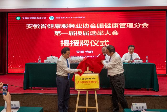 △協(xié)會會長杜昌智和協(xié)會副會長兼秘書長余華伍共同為眼健康管理分會揭牌