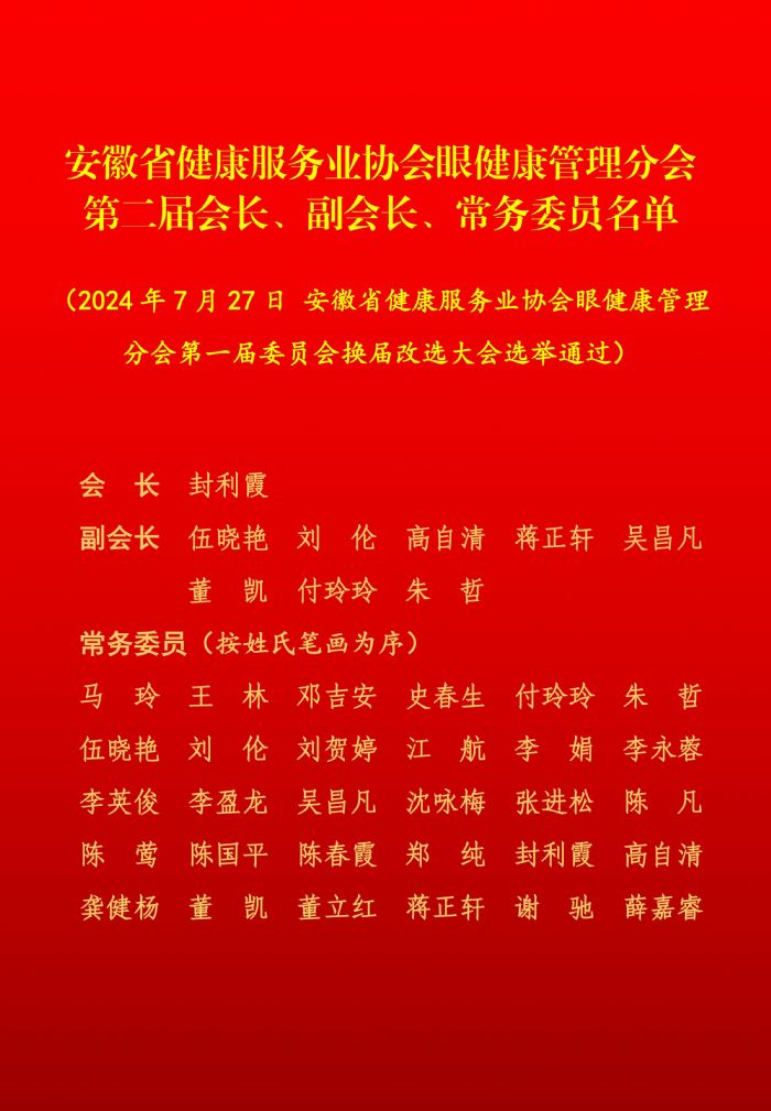 △安徽省健康服務(wù)業(yè)協(xié)會眼健康管理分會第二屆會長、副會長、常務(wù)委員名單