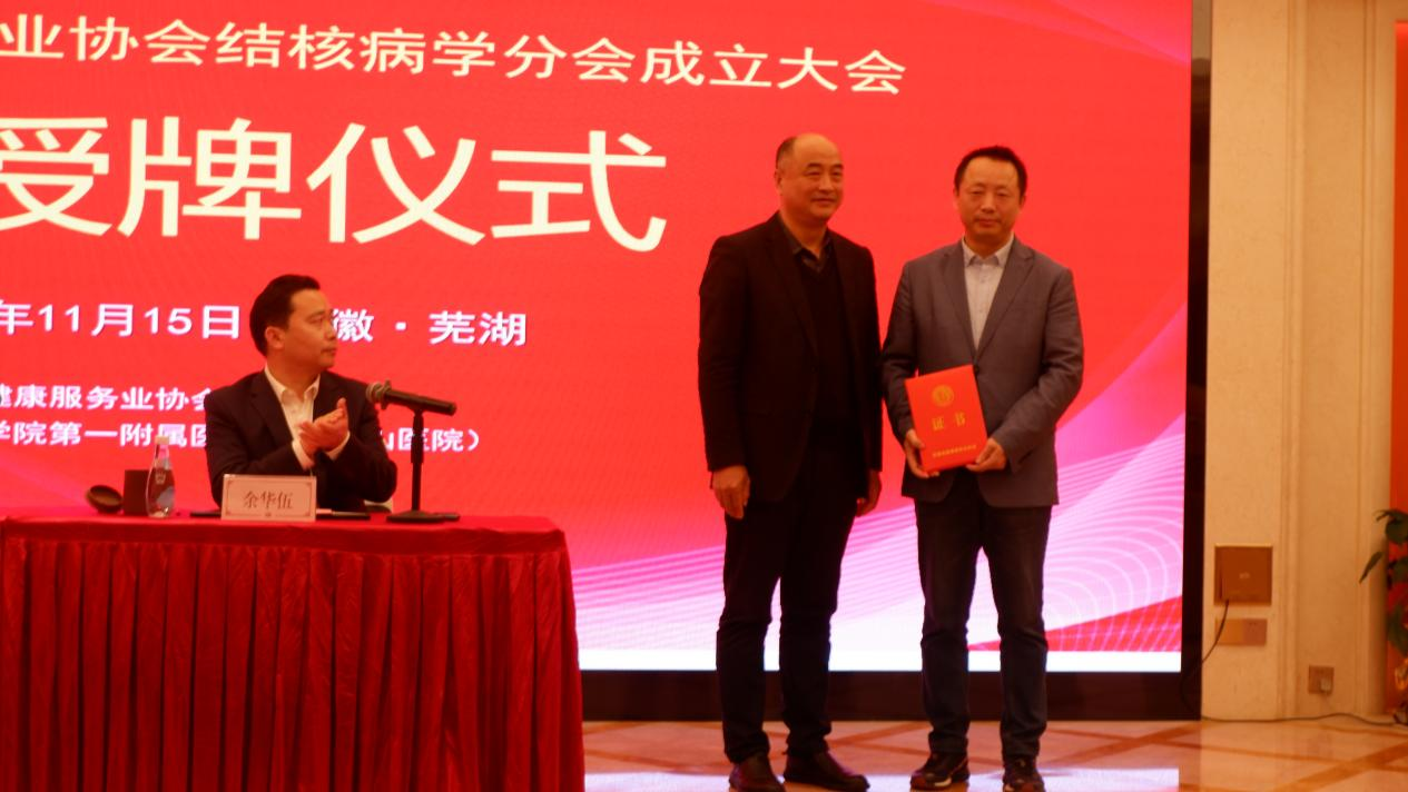首先,由協(xié)會副秘書長兼辦公室主任余鑫宣讀了安徽省健康服務(wù)業(yè)協(xié)會《關(guān)于同意成立結(jié)核病學分會的批復》,皖南醫(yī)學院第一附屬醫(yī)院(弋磯山醫(yī)院)感染性疾病科科主任、結(jié)核病學分會籌備組組長楊江華教授作籌備工作報告。協(xié)會學術(shù)交流部主任孟楠清點應到候選委員人數(shù)和實到候選委員人數(shù),確認符合分會選舉有關(guān)規(guī)定。按照大會安排,依據(jù)協(xié)會章程和協(xié)會分會管理辦法等有關(guān)規(guī)定,通過民主投票方式,選舉出了第一屆委員會常委人選,會長、副會長人選,楊江華當選安徽省健康服務(wù)業(yè)協(xié)會結(jié)核病學分會第一屆會長,王華、盛皓宇、劉芳當選副會長。會議期間舉行了揭牌授牌儀式,并為分會會長楊江華以及副會長頒發(fā)了證書。