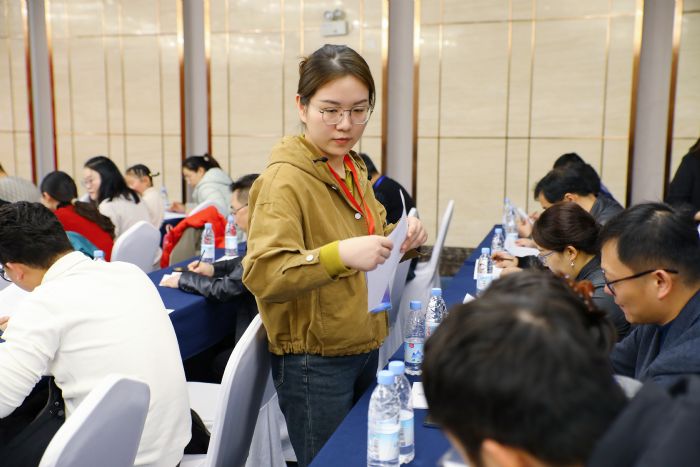 △協(xié)會學(xué)術(shù)交流部主任孟楠點名統(tǒng)計實到候選委員數(shù)