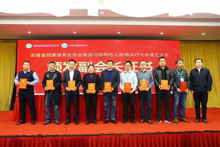 首先,由安徽省健康服務(wù)業(yè)協(xié)會副會長、安徽省胸科醫(yī)院院長張良宣讀了安徽省健康服務(wù)業(yè)協(xié)會《關(guān)于同意成立缺血與結(jié)構(gòu)性心臟病診療分會的批復(fù)》,安徽省胸科醫(yī)院心血管內(nèi)科科主任、缺血與結(jié)構(gòu)性心臟病診療分會籌備組組長許金鵬教授作籌備工作報告。協(xié)會學(xué)術(shù)交流部主任孟楠清點應(yīng)到候選委員人數(shù)和實到候選委員人數(shù),確認符合分會選舉有關(guān)規(guī)定。按照大會安排,依據(jù)協(xié)會章程和協(xié)會分會管理辦法等有關(guān)規(guī)定,通過民主投票方式,選舉出了第一屆委員會常委人選,會長、副會長人選,許金鵬當(dāng)選安徽省健康服務(wù)業(yè)協(xié)會缺血與結(jié)構(gòu)性心臟病診療分會第一屆會長,余華、汪和貴、李世光、沈童童、呂留強、劉利軍、江榮炎、張斌、馬瑞、盧家忠當(dāng)選副會長。會議期間舉行了揭牌授牌儀式,并為分會會長許金鵬以及副會長頒發(fā)了證書。
