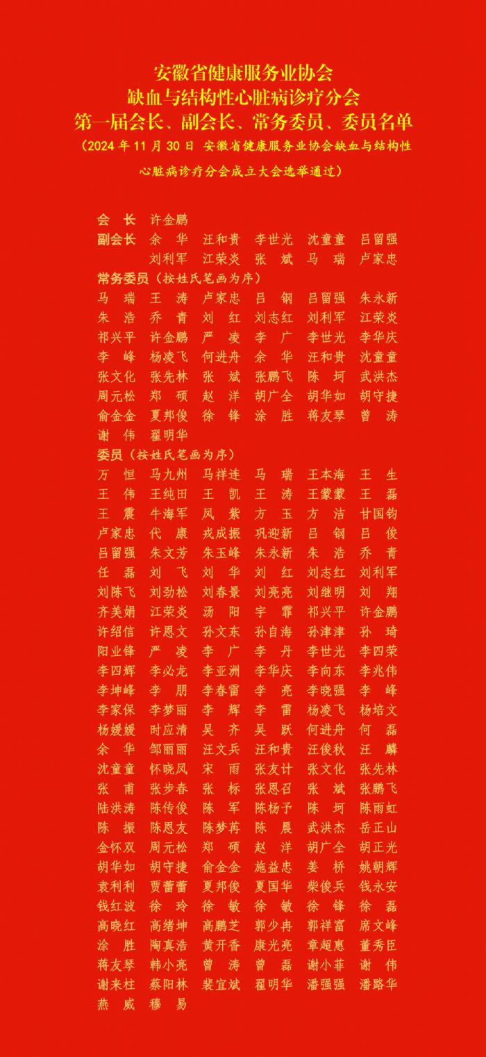 △安徽省健康服務(wù)業(yè)協(xié)會缺血與結(jié)構(gòu)性心臟病診療分會第一屆會長、副會長、常務(wù)委員、委員名單