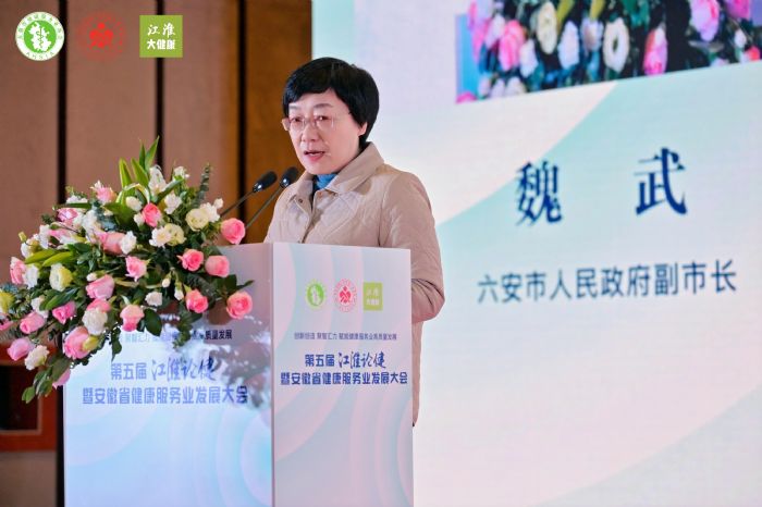 六安市人民政府副市長(zhǎng)魏武致辭,她指出第五屆江淮論健暨安徽省健康服務(wù)業(yè)發(fā)展大會(huì)在六安舉辦,將進(jìn)一步推動(dòng)六安衛(wèi)生健康事業(yè)發(fā)展。六安市將以此次活動(dòng)為契機(jī),認(rèn)真貫徹落實(shí)習(xí)近平總書記考察安徽重要講話精神,與各協(xié)會(huì)會(huì)員代表加強(qiáng)學(xué)術(shù)交流、開展科研合作、共謀學(xué)科建設(shè)、共商產(chǎn)業(yè)招引,加快健康服務(wù)業(yè)高質(zhì)量發(fā)展,為健康安徽建設(shè)貢獻(xiàn)六安力量。