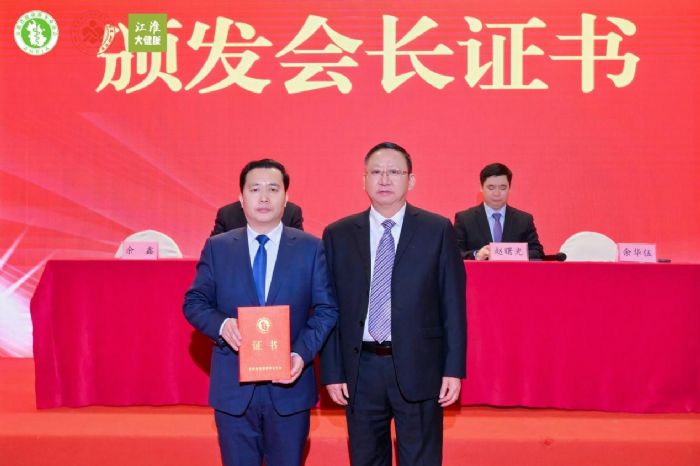 △協(xié)會(huì)會(huì)長(zhǎng)杜昌智為當(dāng)選分會(huì)會(huì)長(zhǎng)余華伍頒發(fā)證書(shū)
