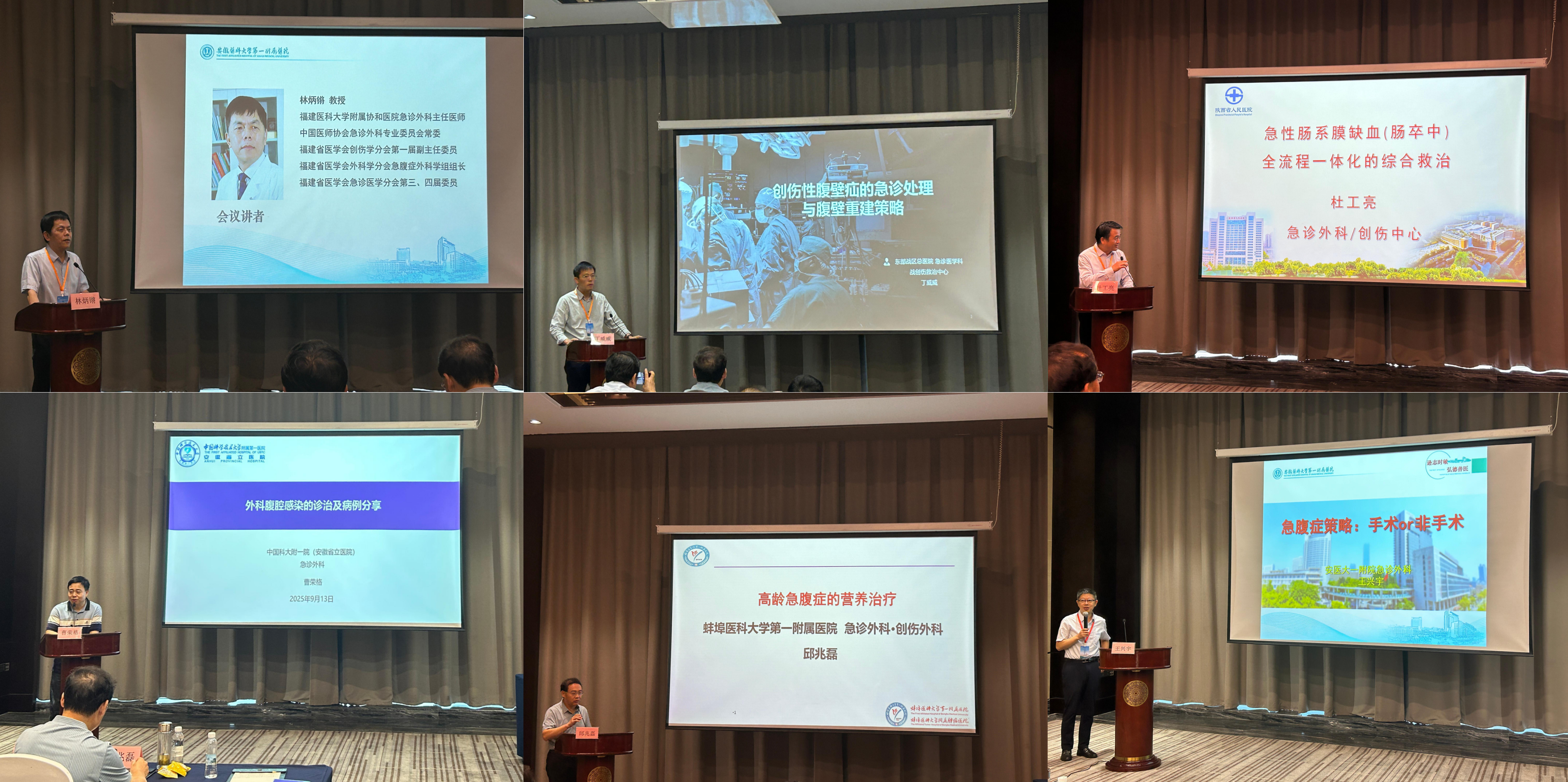 福建醫(yī)科大學(xué)附屬協(xié)和醫(yī)院林炳鏘教授以《血運性腸梗阻:急腹癥外科醫(yī)生干預(yù)的時機》為題,系統(tǒng)闡述了該急危重癥的早期識別關(guān)鍵點和手術(shù)時機的把握原則。解放軍東部戰(zhàn)區(qū)總醫(yī)院丁威威教授分享了《創(chuàng)傷性腹壁疝的急診處置與腹壁重建策略》,從損傷控制到確定性手術(shù),全面介紹了創(chuàng)傷性腹壁疝的規(guī)范化處理路徑。陜西省人民醫(yī)院杜工亮教授針對《急性腸系膜缺血性疾病的救治》,準確診斷和及時處理在降低死亡率中的重要作用,并詳細介紹了溶栓、抗凝、取栓及手術(shù)的適應(yīng)癥。中國科學(xué)技術(shù)大學(xué)附屬第一醫(yī)院曹榮格教授則圍繞《復(fù)雜腹腔感染的急診診治》,提出基于病原學(xué)和局部感染控制的個體化治療策略。蚌埠醫(yī)科大學(xué)第一附屬醫(yī)院邱兆磊教授在《高齡急腹癥患者營養(yǎng)管理》報告中,深入探討了老年患者圍手術(shù)期營養(yǎng)支持的難點與實施要點。最后,大會主席、安徽醫(yī)科大學(xué)第一附屬醫(yī)院王興宇教授以《急腹癥治療決策:手術(shù)or非手術(shù)?》為題作總結(jié)發(fā)言,通過多個經(jīng)典案例,剖析了臨床決策的綜合考量因素與循證依據(jù)。