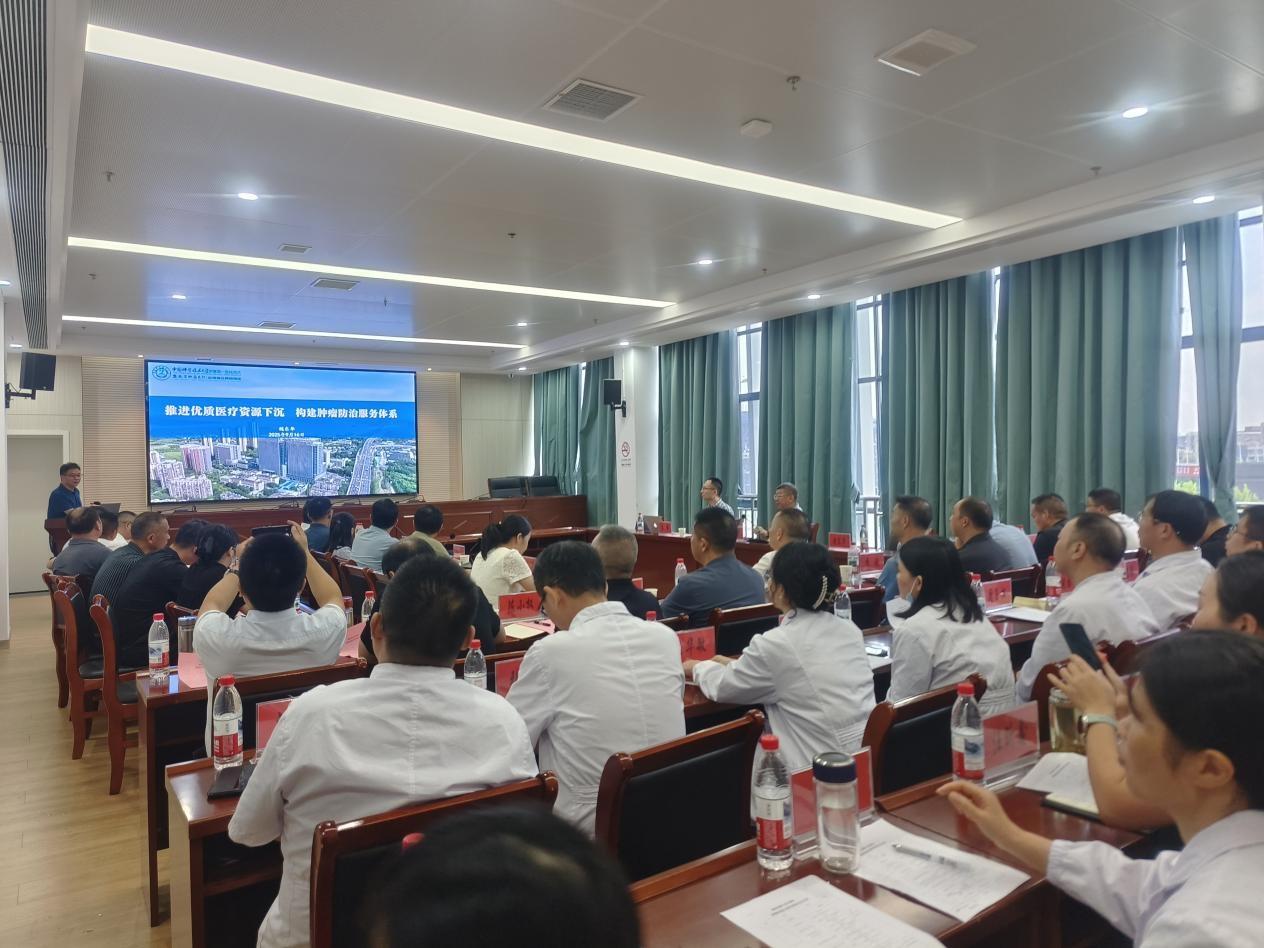 中國科學(xué)技術(shù)大學(xué)附屬第一醫(yī)院(安徽省立醫(yī)院)副院長、西區(qū)黨委書記虞德才帶領(lǐng)省級專家團(tuán)隊到會指導(dǎo)。太湖縣衛(wèi)健委及縣人民醫(yī)院主要負(fù)責(zé)同志出席會議并致辭?h人民醫(yī)院部分領(lǐng)導(dǎo)班子成員、中層干部、各分院院長及腫瘤防治中心核心成員共同參加了會議。