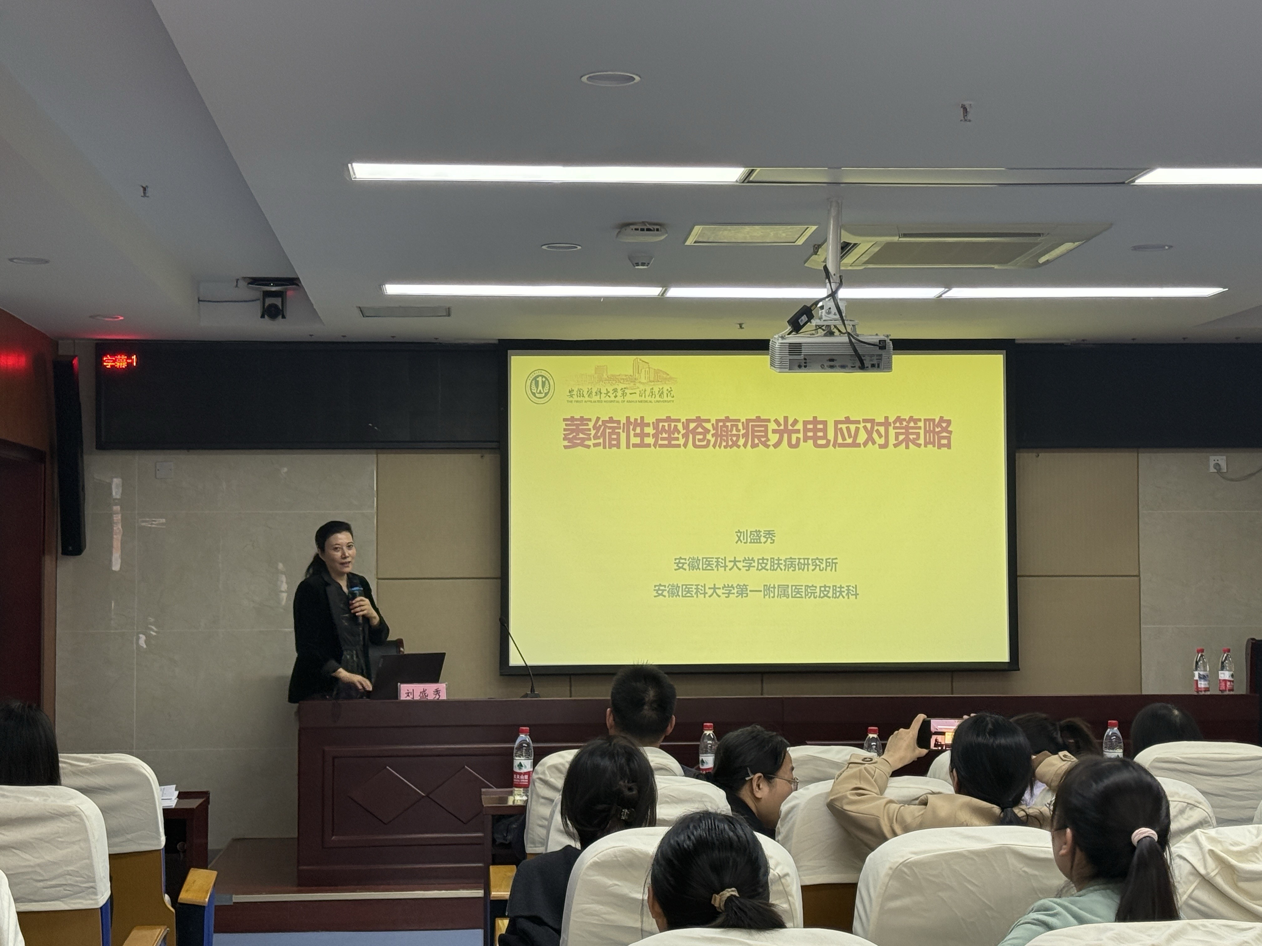 會議分為上午的“外地專家授課”與下午的“巢湖本地專家交流”兩大板塊。上午的課程中,來自中國科學(xué)技術(shù)大學(xué)附屬第一醫(yī)院、皖南醫(yī)學(xué)院第二附屬醫(yī)院、安徽醫(yī)科大學(xué)各附屬醫(yī)院等多位專家,圍繞腋臭與脫發(fā)綜合治療、等離子體技術(shù)應(yīng)用、生物制劑治療慢性蕁麻疹、萎縮性痤瘡瘢痕光電修復(fù)、斑禿診療策略等前沿內(nèi)容進(jìn)行了系統(tǒng)講解,內(nèi)容涵蓋藥物治療、設(shè)備應(yīng)用與美容修復(fù)等多個(gè)方向。