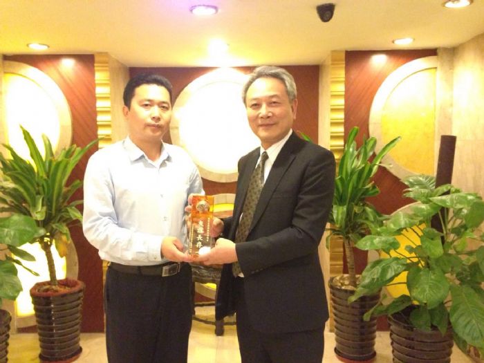 會后,中華醫(yī)務管理暨生技發(fā)展協(xié)會常務理事暨臺北榮民總醫(yī)院黃毓龍副院長向余華伍秘書長贈送了鐫刻有友誼長存的水晶紀念擺件。雙方進行了合影留念。