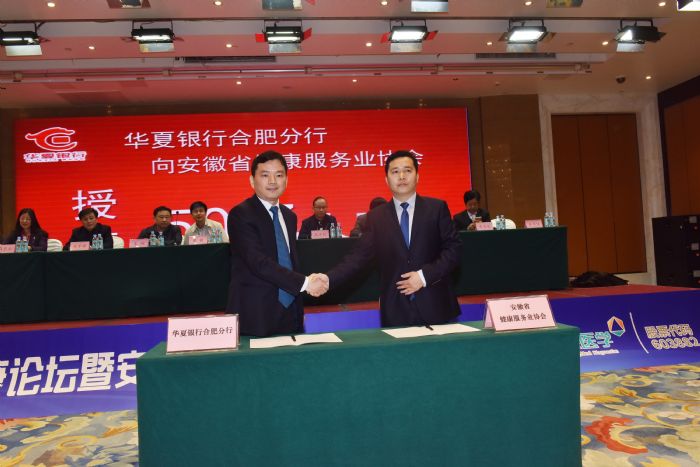 在當(dāng)天的大會(huì)上,安徽省健康服務(wù)業(yè)協(xié)會(huì)副會(huì)長兼秘書長余華伍與華夏銀行合肥分行副行長承先共同簽署了“華夏銀行向安徽省健康服務(wù)業(yè)協(xié)會(huì)授信50億元人民幣合作協(xié)議”。兩位負(fù)責(zé)人共同稱,我國的健康事業(yè)已經(jīng)邁入新時(shí)代,健康產(chǎn)業(yè)發(fā)展進(jìn)入黃金期,面對(duì)健康服務(wù)業(yè)迎來的大好局面,作為協(xié)會(huì)和銀行都要緊緊把握住這一千載難逢的歷史機(jī)遇,發(fā)揮各自作用,敢于擔(dān)當(dāng),為安徽省健康服務(wù)業(yè)的發(fā)展做服務(wù)做貢獻(xiàn)。