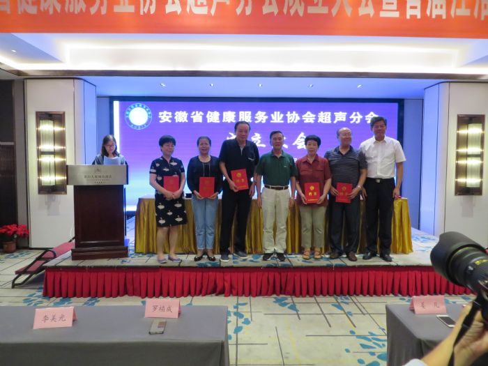 會(huì)議伊始,安徽省健康服務(wù)業(yè)協(xié)會(huì)駐會(huì)副秘書長(zhǎng)于澍民宣讀了《關(guān)于同意召開安徽省健康服務(wù)業(yè)協(xié)會(huì)超聲分會(huì)成立大會(huì)的批復(fù)》,籌備組組長(zhǎng)、中國(guó)科技大學(xué)附屬第一醫(yī)院(安徽省立醫(yī)院)超聲科隋秀芳主任作安徽省健康服務(wù)業(yè)協(xié)會(huì)超聲分會(huì)籌備工作報(bào)告。依據(jù)協(xié)會(huì)章程和分會(huì)管理辦法有關(guān)規(guī)定,通過民主投票方式,選舉產(chǎn)生首屆超聲分會(huì)常委、副會(huì)長(zhǎng)、會(huì)長(zhǎng)。來(lái)自中國(guó)科技大學(xué)附屬第一醫(yī)院超聲科隋秀芳主任當(dāng)選為超聲分會(huì)首任會(huì)長(zhǎng),來(lái)自安徽醫(yī)科大學(xué)第二附屬醫(yī)院超聲科姜凡主任、解放軍105醫(yī)院童清平教授、安徽中醫(yī)藥大學(xué)附屬醫(yī)院王金萍教授、安徽醫(yī)科大學(xué)第一附屬醫(yī)院張超學(xué)教授等4人當(dāng)選為副會(huì)長(zhǎng),并選舉產(chǎn)生常務(wù)委員18人,委員103人。大會(huì)還聘任省內(nèi)的老專家羅福成教授等9人為分會(huì)顧問。安徽省健康服務(wù)業(yè)協(xié)會(huì)會(huì)長(zhǎng)劉愛國(guó)教授和安徽省健康服務(wù)業(yè)協(xié)會(huì)副會(huì)長(zhǎng)兼秘書長(zhǎng)余華伍教授共同為超聲分會(huì)揭牌,并向隋秀芳主任等頒發(fā)證書。