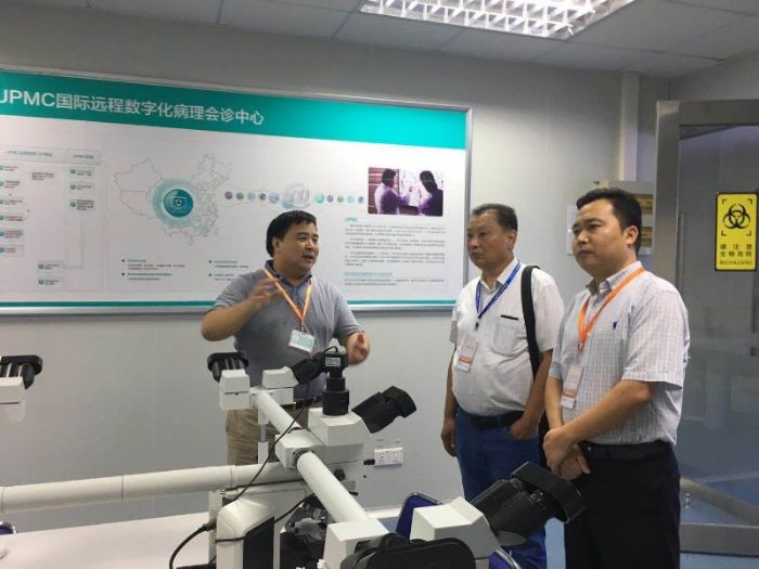 合肥金域醫(yī)學(xué)檢驗所常務(wù)副總經(jīng)理申夢來熱情接待了協(xié)會一行人。在合肥金域展廳,申夢來副總詳細(xì)介紹了金域檢驗集團(tuán)及合肥金域近年來的發(fā)展歷程,以及公司在研發(fā)創(chuàng)新、產(chǎn)業(yè)發(fā)展、示范應(yīng)用和高新技術(shù)等方面取得的重要成果和所獲得的資質(zhì)榮譽(yù)。在申夢來副總的陪同下,協(xié)會一行人又仔細(xì)觀看了金域公司的實驗室、病理診斷中心等,聽取了相關(guān)介紹和匯報。
