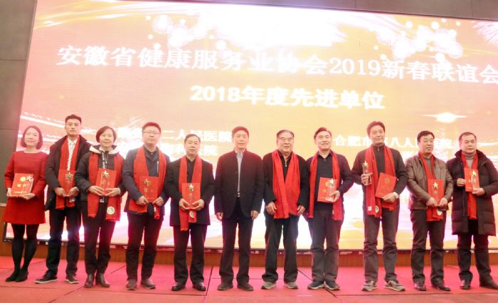 在新春聯(lián)誼會上,協(xié)會授予安徽省第二人民醫(yī)院、安徽省胸科醫(yī)院、壽縣中醫(yī)院等20家單位為“安徽省健康服務(wù)業(yè)協(xié)會2018年度先進(jìn)單位”稱號,授予安徽美年大健康管理咨詢有限公司、合肥潤達(dá)萬通醫(yī)療科技有限公司、安徽省圣潔醫(yī)療科技有限公司等3家企業(yè)為“安徽省健康服務(wù)業(yè)2018年度優(yōu)秀企業(yè)獎”稱號,授予心血管健康管理分會和婦女健康管理分會為“安徽省健康服務(wù)業(yè)協(xié)會2018年度先進(jìn)分會”稱號。