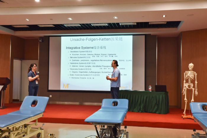 iMT綜合手法治療課程,是由德國國家保險(xiǎn)認(rèn)證,并由國家指定康復(fù)培訓(xùn)機(jī)構(gòu)為德國康復(fù)治療師提供的職業(yè)進(jìn)階課程。本次技術(shù)推廣班為期三天,邀請(qǐng)了iMT綜合手法治療高級(jí)導(dǎo)師Thomas Brucha先生、德國國家康復(fù)治療師郜志英老師做專題授課和技能操作演示。圍繞脊椎及骨盆相關(guān)疼痛和運(yùn)動(dòng)損傷進(jìn)行了內(nèi)容豐富多彩的專題授課,將脊椎病、腰椎間盤突出和骨盆系統(tǒng)疾病的康復(fù)治療進(jìn)行多維度立體分析,打破傳統(tǒng)的康復(fù)治療頭疼醫(yī)頭腳疼醫(yī)腳的治療思路,做到了理論與實(shí)際相結(jié)合,涉及功能解剖、疾病相關(guān)生理與病理變化、專科查體與系統(tǒng)康復(fù)評(píng)估,建立康復(fù)治療系統(tǒng)理論框架,將基礎(chǔ)理論與康復(fù)治療技術(shù)實(shí)踐相結(jié)合,系統(tǒng)嚴(yán)謹(jǐn)?shù)慕虒W(xué),理論與實(shí)踐相融合,建立一整套康復(fù)治療新思維,讓學(xué)員們理解并掌握了相關(guān)課程iMT綜合治療手法。