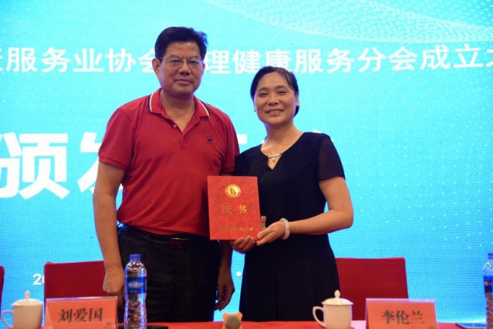 協(xié)會(huì)會(huì)長(zhǎng)劉愛國(guó)和協(xié)會(huì)副會(huì)長(zhǎng)兼秘書長(zhǎng)余華伍向分會(huì)李倫蘭會(huì)長(zhǎng)頒發(fā)“護(hù)理健康服務(wù)分會(huì)”會(huì)牌及證書。