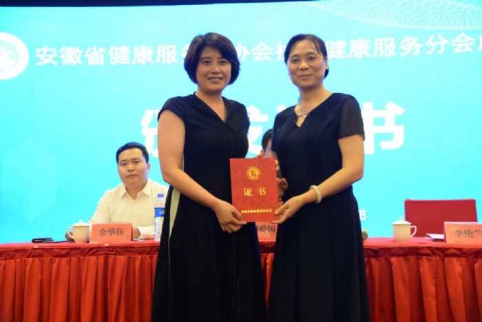 李倫蘭會(huì)長(zhǎng)任命安徽醫(yī)科大學(xué)第一附屬醫(yī)院護(hù)理部胡少華主任為秘書長(zhǎng),并頒發(fā)證書。