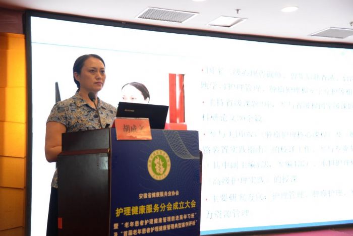 安徽醫(yī)科大學(xué)第一附屬醫(yī)院黨委書記金宗祥致詞,對(duì)分會(huì)的成立及李倫蘭處長(zhǎng)當(dāng)選為分會(huì)會(huì)長(zhǎng)表示祝賀。并針對(duì)護(hù)理學(xué)的發(fā)展及老年護(hù)理的現(xiàn)狀,護(hù)理健康服務(wù)的長(zhǎng)遠(yuǎn)規(guī)劃等作了高屋建瓴的講話。