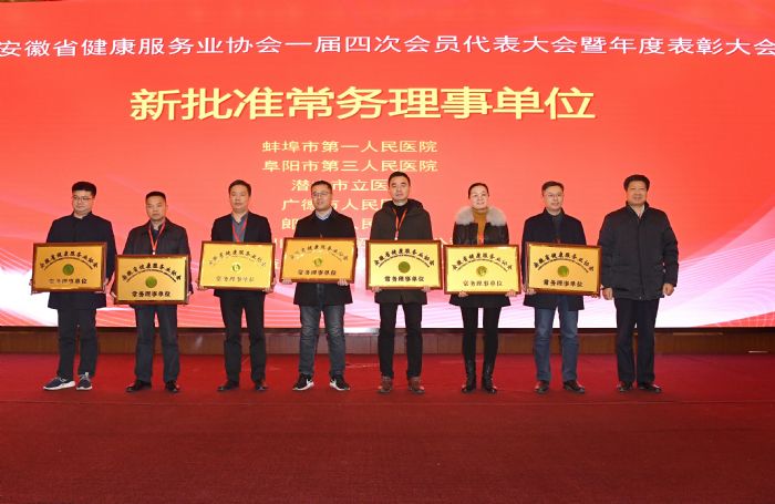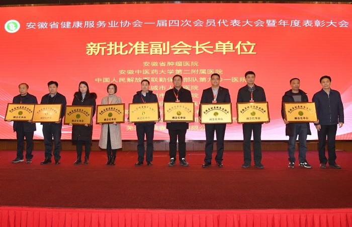 隨后進行2019年度先進單位、先進個人、特別貢獻獎表彰環(huán)節(jié)。協(xié)會副會長、皖南醫(yī)學(xué)院第二附屬醫(yī)院院長陳斌宣讀表彰決定。安徽醫(yī)科大學(xué)第一附屬醫(yī)院、安徽濟民腫瘤醫(yī)院、安徽省胸科醫(yī)院、蚌埠醫(yī)學(xué)院第一附屬醫(yī)院、東至縣中醫(yī)院、阜陽市人民醫(yī)院、懷寧縣人民醫(yī)院、霍邱縣第一人民醫(yī)院、廬州衛(wèi)生科技學(xué)校、壽縣中醫(yī)醫(yī)院、太和縣中醫(yī)院、皖南醫(yī)學(xué)院第二附屬醫(yī)院、皖南醫(yī)學(xué)院弋磯山醫(yī)院、潁上縣人民醫(yī)院、中國科學(xué)技術(shù)大學(xué)附屬第一醫(yī)院南區(qū)等15家單位榮獲“2019年度先進單位”稱號;鮑健羽、陳斌、董輝軍、方金勇、方書法、馮淼鑫、傅學(xué)軼、葛維朝、韓勇、胡炳德、黃后寶、黃錄茂、呂滿民、孟曉琳、潘家東、冉獻貴、石進軍、孫國平、孫良丹、汪輪飛、王軍、王萍、王延照、王治龍、徐利民、葉俊、游昌林、喻典平、張旭、張宇等30人榮獲“2019年度先進個人”稱號;安徽華源醫(yī)藥集團股份有限公司、安徽美年大健康管理咨詢有限公司、安徽海豚健康管理有限公司、安徽多威爾智能科技有限公司、肥西縣中醫(yī)院、阜陽市第五人民醫(yī)院、阜陽市婦女兒童醫(yī)院、合肥金域醫(yī)學(xué)檢驗實驗室有限公司、合肥盛文優(yōu)路教育科技有限公司、利辛縣中醫(yī)院、六安市人民醫(yī)院、上藥控股安徽有限公司、太和縣中醫(yī)院、皖南醫(yī)學(xué)院第二附屬醫(yī)院、揚子江藥業(yè)集團有限公司等15家單位榮獲“2019年度特別貢獻獎”稱號。