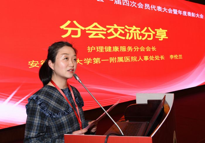 分會交流分享環(huán)節(jié)特邀協(xié)會護理健康服務(wù)分會會長、安徽醫(yī)科大學(xué)第一附屬醫(yī)院人事處處長李倫蘭教授作分享交流。