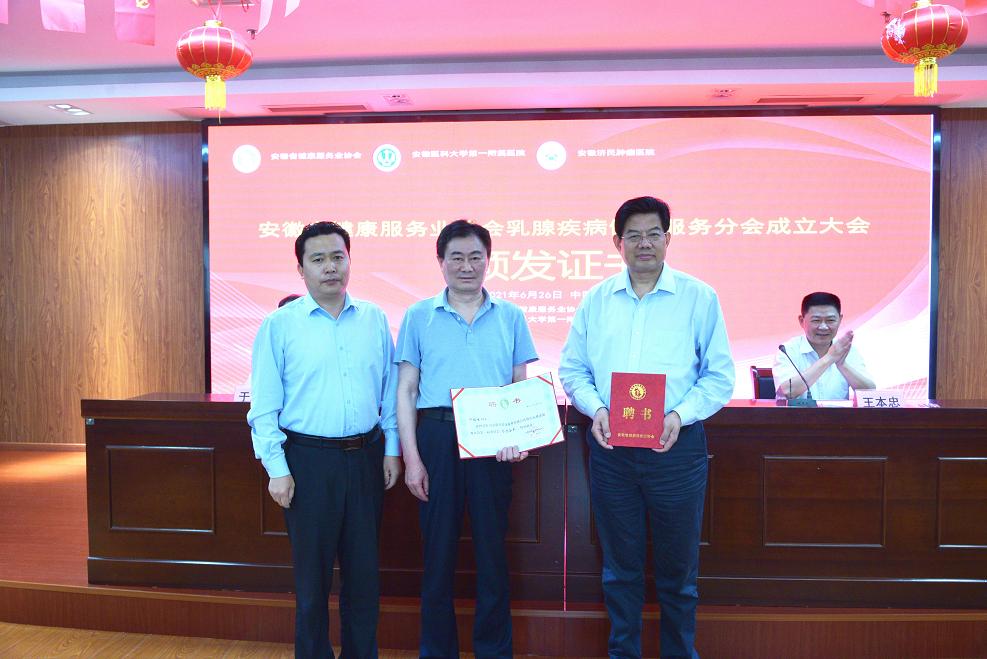 6月26日,安徽省健康服務(wù)業(yè)協(xié)會(huì)乳腺疾病健康服務(wù)分會(huì)成立大會(huì)暨2021濟(jì)民乳腺腫瘤論壇在安徽濟(jì)民腫瘤醫(yī)院召開。本次會(huì)議由安徽省健康服務(wù)業(yè)協(xié)會(huì)(以下簡稱協(xié)會(huì))主辦,安徽濟(jì)民腫瘤醫(yī)院、安徽醫(yī)科大學(xué)第一附屬醫(yī)院承辦。協(xié)會(huì)會(huì)長劉愛國;協(xié)會(huì)副會(huì)長兼秘書長余華伍;協(xié)會(huì)副秘書長兼學(xué)術(shù)交流部主任于澍民;分會(huì)籌備組組長王本忠出席大會(huì),來自全省各地的乳腺疾病專家、學(xué)者及骨干近100人參加會(huì)議。成立大會(huì)由協(xié)會(huì)副會(huì)長兼秘書長余華伍主持。