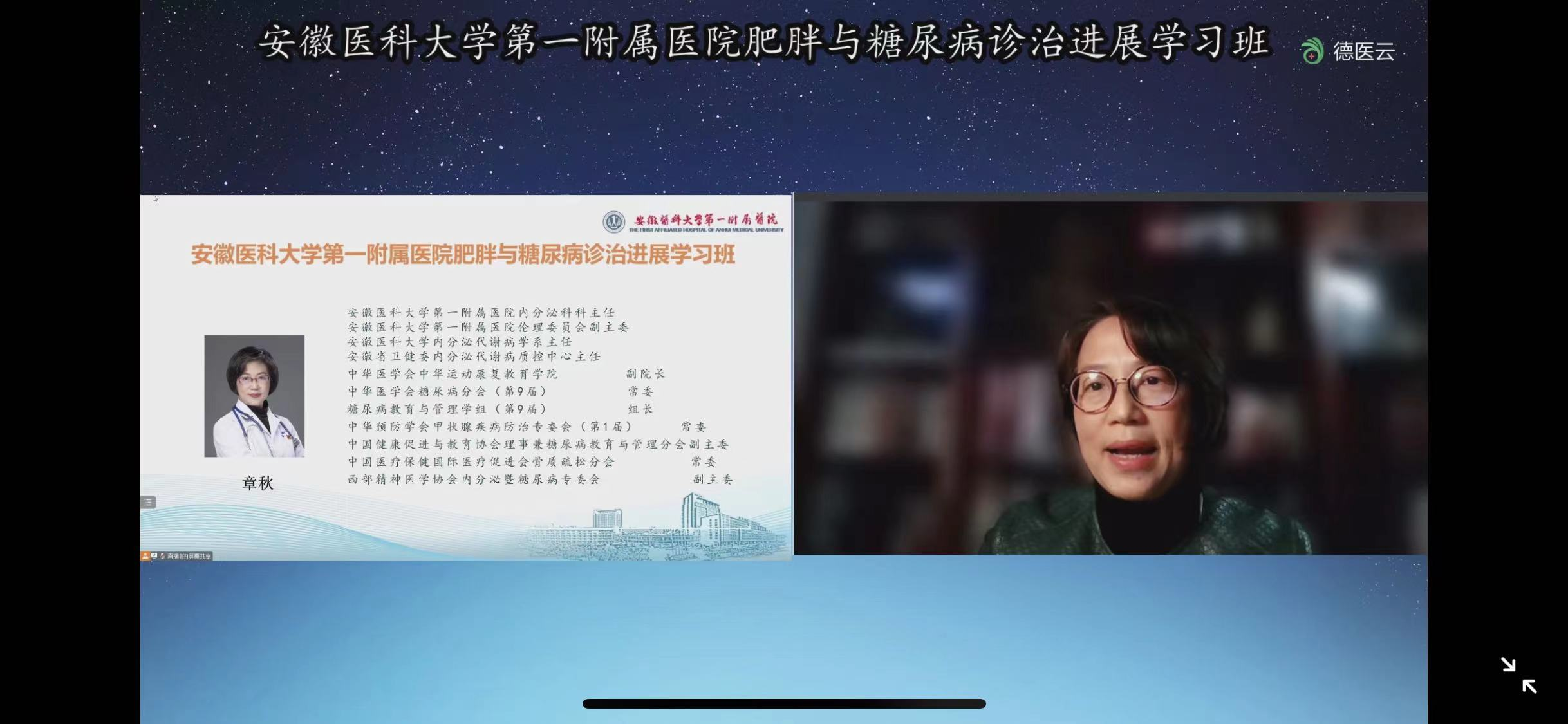 | 10月29日,安徽省健康服務業(yè)協(xié)會內分泌健康代謝分會主辦的肥胖與糖尿病診治進展學術會議順利召開。因疫情防控要求,來自全省各地的近1000余位從事肥胖代謝病領域同行通過視頻連線的方式參加會議。會議開幕式由安徽省健康服務業(yè)協(xié)會內分泌代謝健康分會會長胡紅琳教授致歡迎詞,分會名譽會長章秋教授發(fā)表了熱情洋溢的致辭。