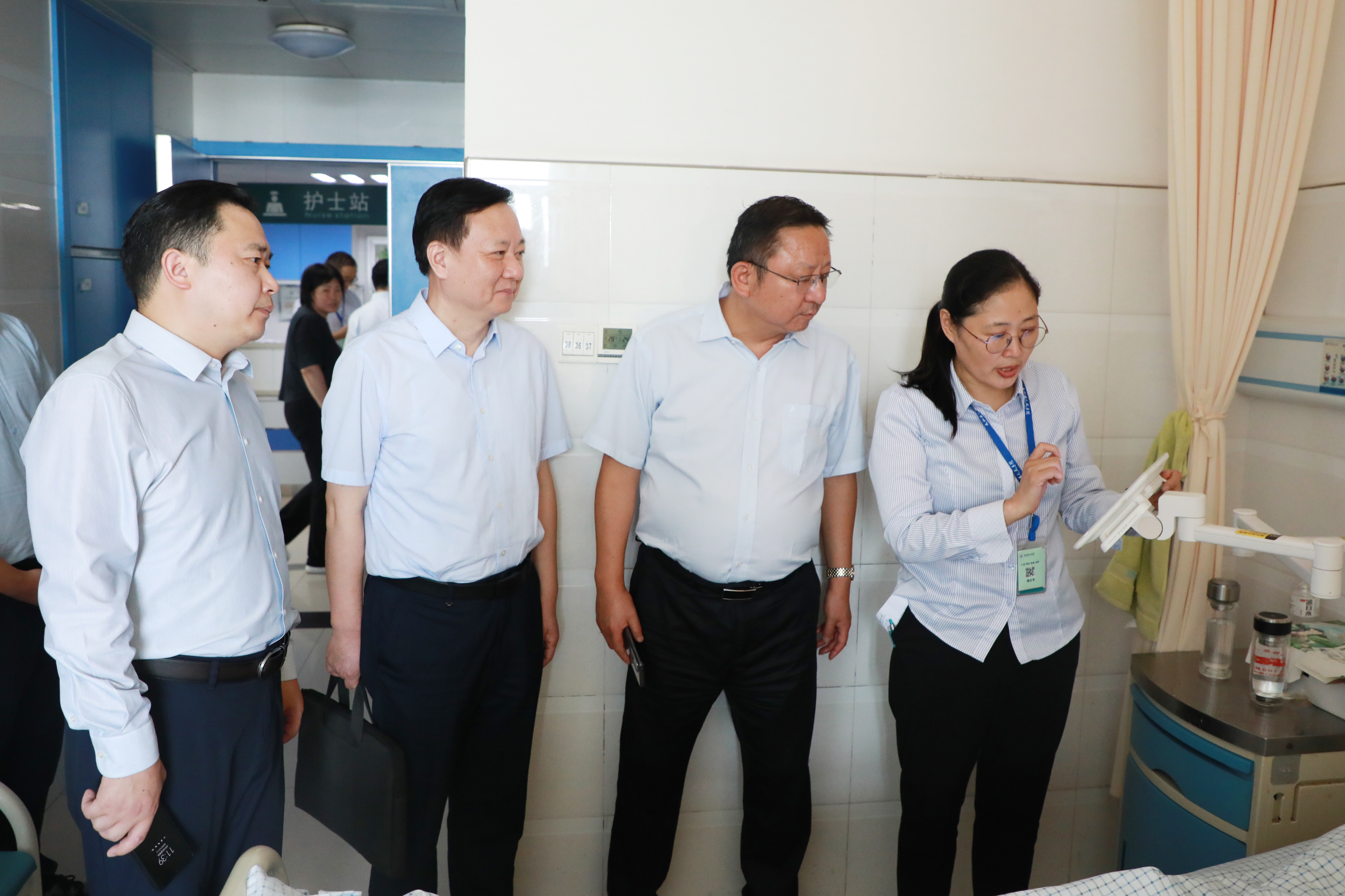 為深入了解我省醫(yī)療護理員試點推進工作,8月3日,安徽省健康服務業(yè)協(xié)會會長、省衛(wèi)生健康委員會原副主任、一級巡視員杜昌智,副會長、安徽醫(yī)科大學第二附屬醫(yī)院黨委書記周典,副會長兼秘書長余華伍,駐會副會長韓勇,護理事業(yè)部主任尹建軍一行赴太和縣人民醫(yī)院開展專題調(diào)研。太和縣人民醫(yī)院黨委書記祝振華,協(xié)會副會長、黨委副書記、院長趙曙光,護理部、總務科及相關(guān)科室負責人陪同調(diào)研。