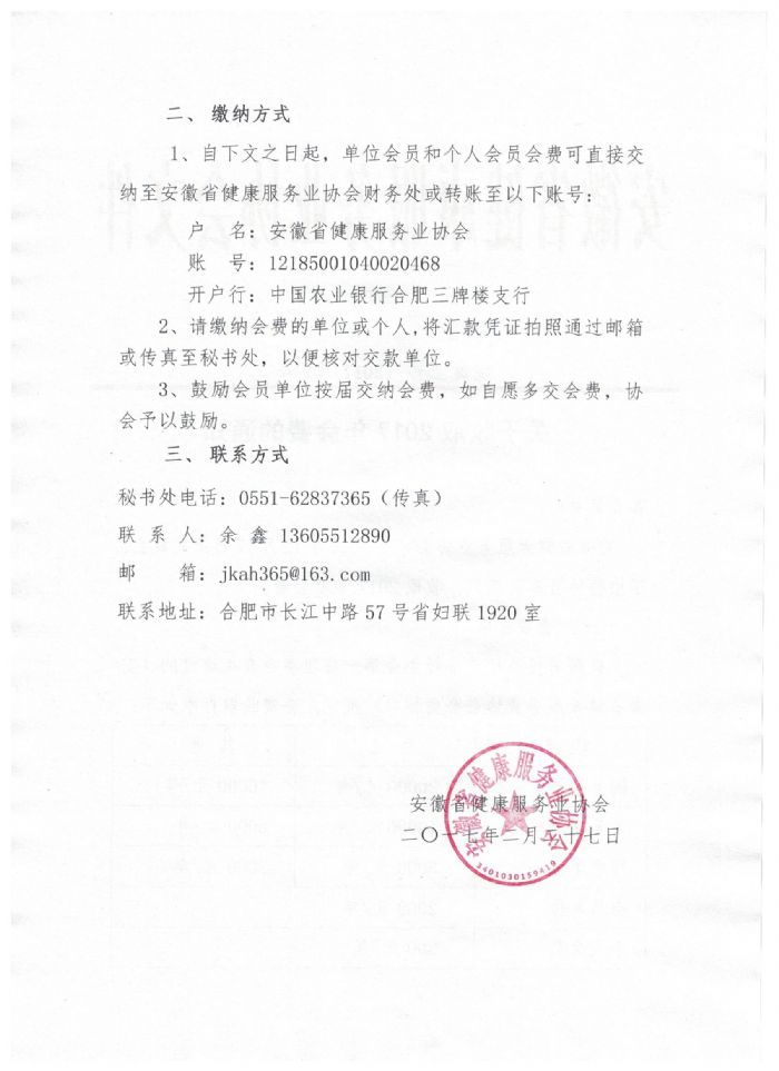 協(xié)會(huì)2017年會(huì)費(fèi)通知