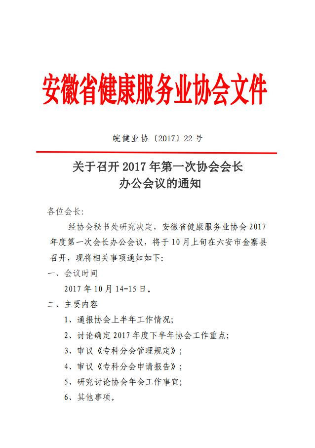 關(guān)于召開2017年第一次協(xié)會會長辦公會議的通知
