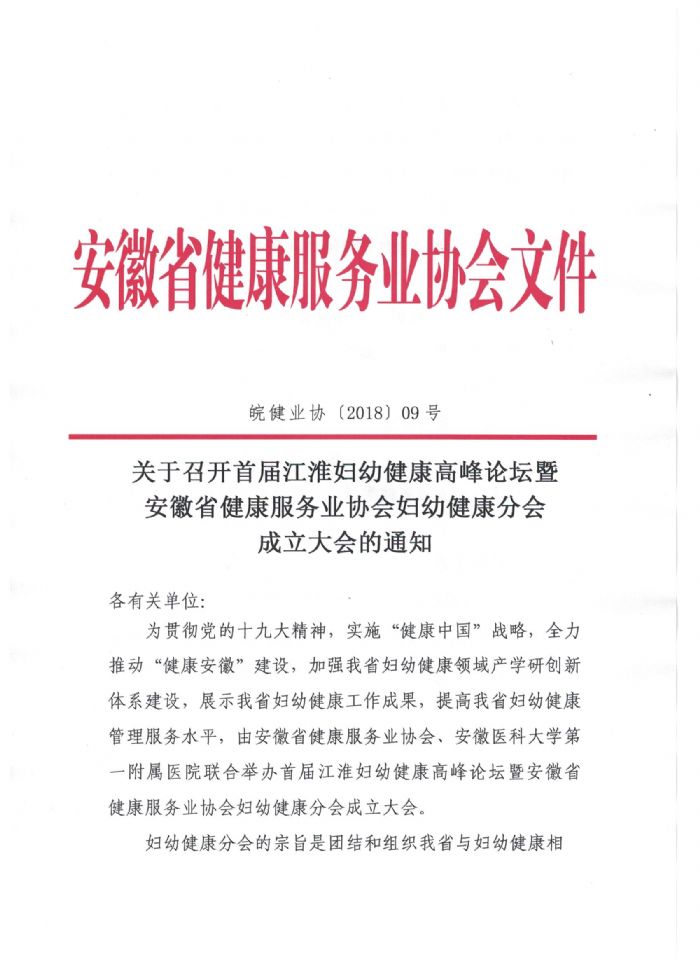 關(guān)于召開首屆江淮婦幼健康高峰論壇暨安徽省健康服務(wù)業(yè)協(xié)會婦幼健康分會成立大會的通知