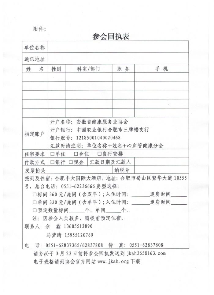 心血管健康分會參會回執(zhí)表