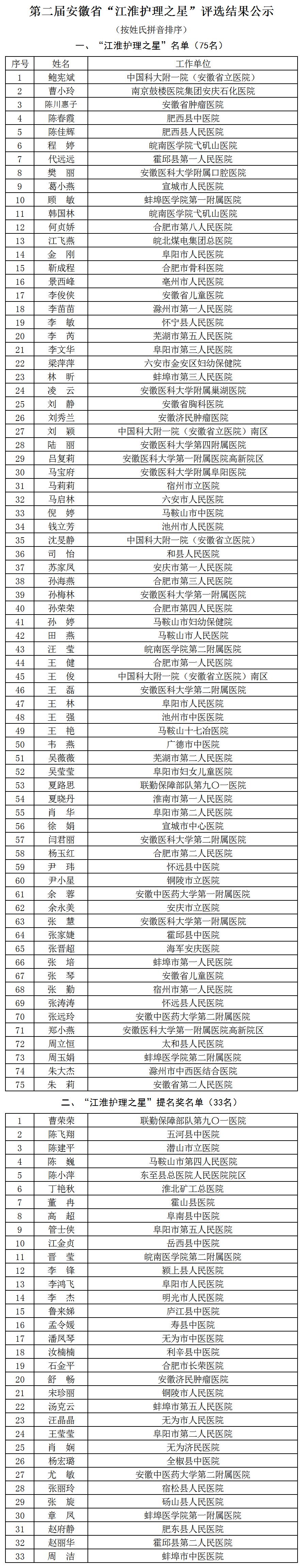附件:第二屆安徽省“江淮護(hù)理之星”評(píng)選結(jié)果公示