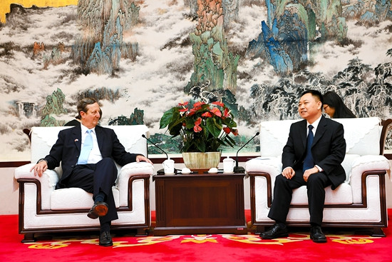 李國英對拉莫斯大使一行來皖表示歡迎,并介紹了安徽經(jīng)濟(jì)社會發(fā)展情況。他說,安徽與古巴經(jīng)濟(jì)互補(bǔ)性較強(qiáng),近年來在經(jīng)貿(mào)、醫(yī)療等領(lǐng)域合作密切,尤其是安徽省第二人民醫(yī)院眼科項目的合作對中古友誼的發(fā)展起到了十分重要的推動作用,并呈現(xiàn)更廣闊的前景,希望雙方進(jìn)一步深化醫(yī)療領(lǐng)域合作,拓展旅游、投資等新的合作領(lǐng)域,實現(xiàn)互利共贏。