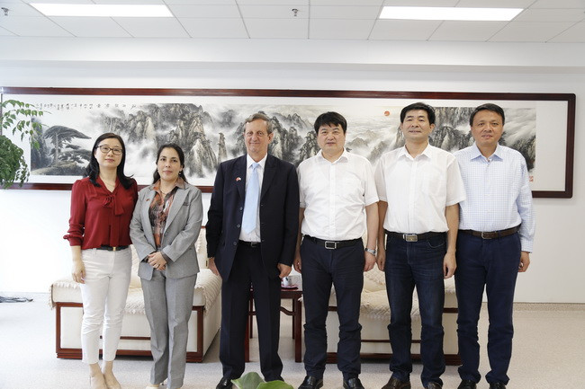 5月24日下午,古巴駐華大使拉莫斯一行來到我院進(jìn)行參觀交流。院黨委書記、院長張兵,黨委副書記、紀(jì)委書記、副院長王延照,副院長周道平、余潤澤及相關(guān)職能科室負(fù)責(zé)人陪同參觀。