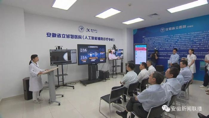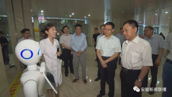 8月20日,我院與科大訊飛合作建設(shè)的“安徽省立智慧醫(yī)院(人工智能輔助診療中心)正式揭牌,這是全國(guó)第一家投入運(yùn)營(yíng)的智慧醫(yī)院,將通過利用大數(shù)據(jù)、云計(jì)算和人工智能等先進(jìn)技術(shù)提供人工智能輔助診斷服務(wù),為我省縣級(jí)醫(yī)院提供遠(yuǎn)程智慧診療服務(wù)。李國(guó)英現(xiàn)場(chǎng)考察了我院導(dǎo)診機(jī)器人、自助發(fā)卡充值掛號(hào)一體化智能終端設(shè)備和自動(dòng)化藥房,觀看了遠(yuǎn)程輔助診斷在線演示,詳細(xì)了解運(yùn)行流程和診療成果。