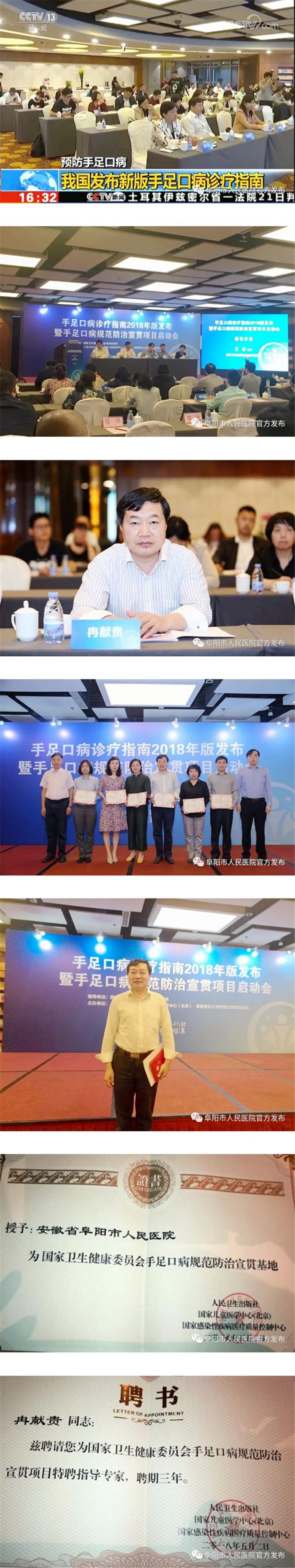 冉獻貴教授作為安徽省手足口病防治領(lǐng)域的知名專家,在手足口病疫情防治方面有著多年的臨床診療和管理經(jīng)驗。特別是在2008年阜陽爆發(fā)的手足口病疫情防治工作中,做出了突出的貢獻。并因此獲得中華醫(yī)學(xué)會科技進步三等獎,阜陽市科技進步突出貢獻獎。此次,冉獻貴作為基層專家代表,參與2018版國家衛(wèi)健委《手足口病診療指南》的修訂,為兒童手足口病救治及規(guī)范化治療作出了貢獻。體現(xiàn)出國家衛(wèi)健委對一線手足口病診療專家意見的重視,和對阜陽醫(yī)療衛(wèi)生戰(zhàn)線長期以來在手足口病防治工作方面所取得成績的充分肯定。