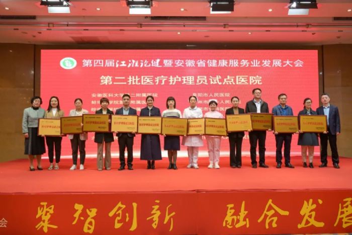 大會進行第二批醫(yī)療護理員試點醫(yī)院授牌儀式。安徽省健康服務業(yè)協會聯合安徽省護理學會在全省部分二級及以上醫(yī)院開展第二批醫(yī)療護理員試點工作,試點工作委托安徽省醫(yī)管健康產業(yè)集團組織實施,第二批醫(yī)療護理員試點醫(yī)院是安徽醫(yī)科大學第二附屬醫(yī)院、蚌埠醫(yī)學院第一附屬醫(yī)院、皖南醫(yī)學院第二附屬醫(yī)院、安徽省兒童醫(yī)院、安徽醫(yī)科大學附屬巢湖醫(yī)院、合肥市第一人民醫(yī)院、六安市人民醫(yī)院、阜陽市人民醫(yī)院、滁州市第一人民醫(yī)院、合肥市骨科醫(yī)院、合肥市第八人民醫(yī)院、明光市人民醫(yī)院、界首市人民醫(yī)院、安徽省第二人民醫(yī)院靈璧醫(yī)院。