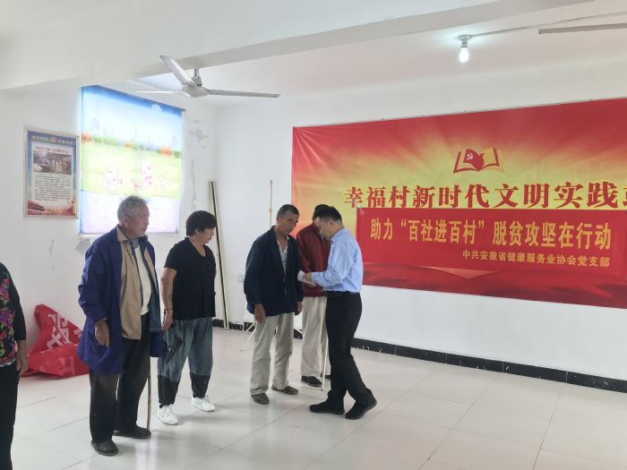 2020年9月22日,值此中秋國慶佳節(jié)到來之際,安徽省健康服務(wù)業(yè)協(xié)會會長劉愛國、副會長兼秘書長余華伍、副秘書長兼學(xué)術(shù)交流部主任于澍民攜協(xié)會黨支部一行前往結(jié)對幫扶村利辛縣孫廟鄉(xiāng)幸福村開展“百社進(jìn)百村”助力脫貧攻堅慰問活動。