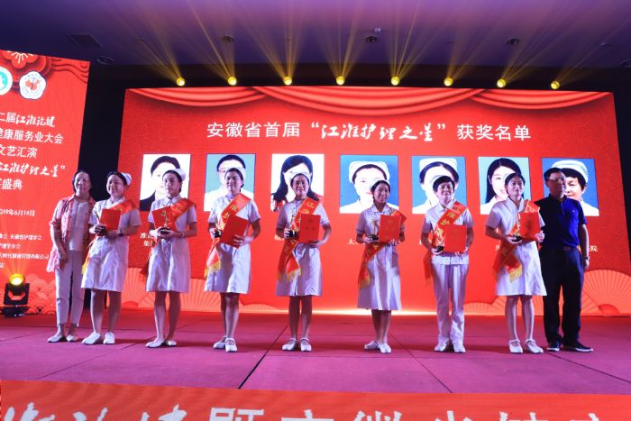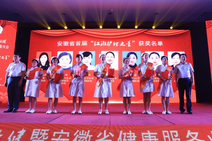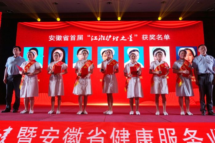 安徽省健康服務(wù)業(yè)協(xié)會會長劉愛國、安徽省護(hù)理學(xué)會理事長武義華共同為獲獎(jiǎng)人頒發(fā)獎(jiǎng)杯和證書